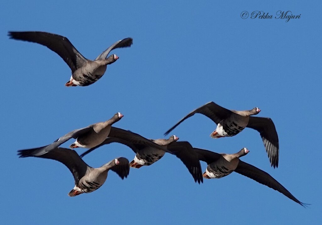 lyhytnokkahanhi ja tundrametsähanhi; Kuopio; Jänneniemi; 24.5.2022: kuva: Markku UkkonenKolme tundrametsähanhea ja kaksi lyhytnokkahanhea (vaaleaselkäiset); Siilinjärvi; Aappola 9.5.2020; kuva: Markku Ukkonen